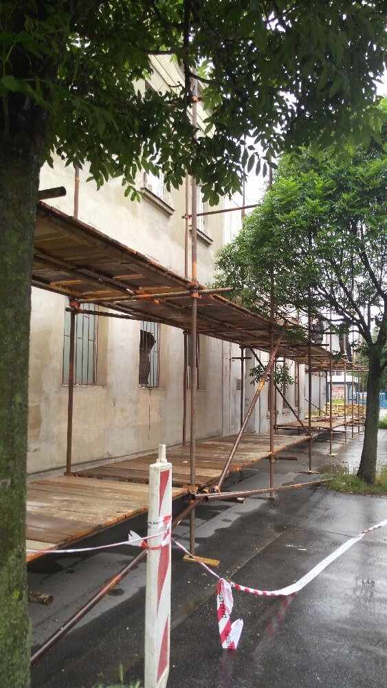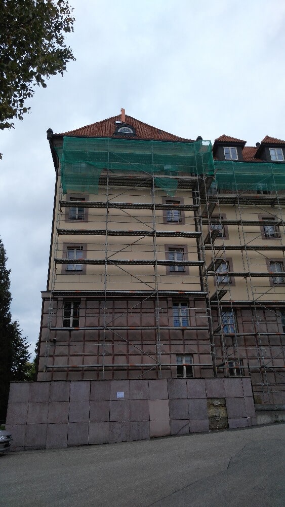 > Zasíťování lešení.